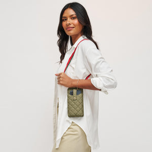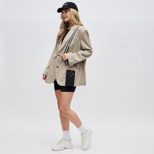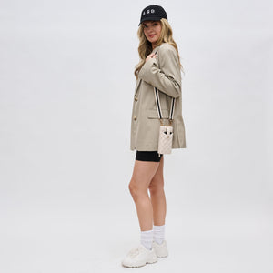 • Exterior Details: Smartphone snap pocket, back zip pocket, gold hardware details