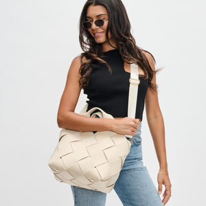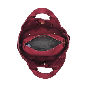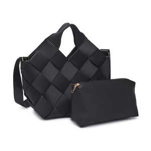 Crafted from neoprene, this bag showcases a stylish woven design with gleaming gold hardware. The magnetic snap closure adds convenience, and the adjustable/detachable shoulder strap offers flexibility. Inside, it's unlined for a minimalist touch, and it includes a removable zip pouch, making it both functional and fashionable for your everyday needs.