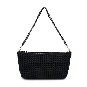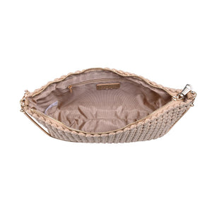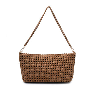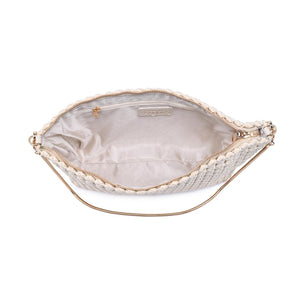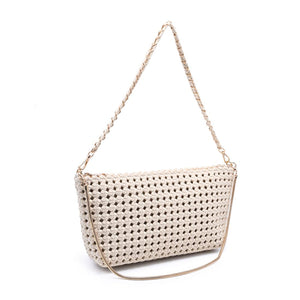 Exterior Details: Woven exterior with a braided shoulder strap and slim strap, gold hardware