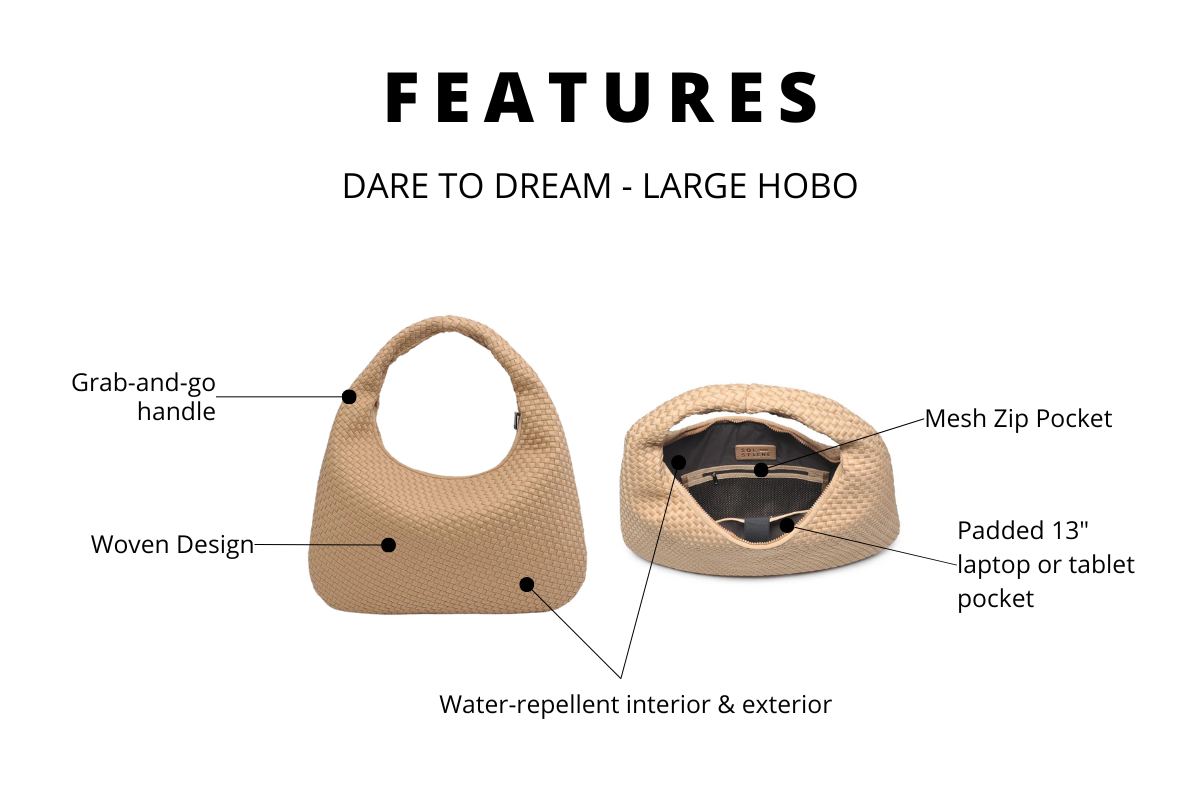 Introducing our Dare to Dream Hobo – where sporty meets chic! This woven beauty features a secure zipper closure, perfect for your active lifestyle. Inside, the fabric-lined interior, complete with a zip pocket and two slip pockets, keeps your essentials organized and ready for any adventure.