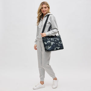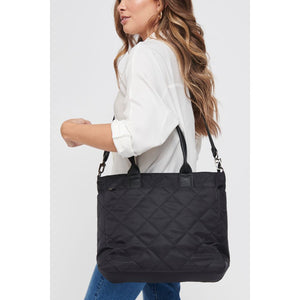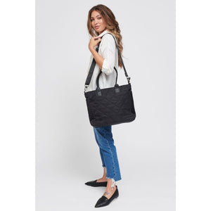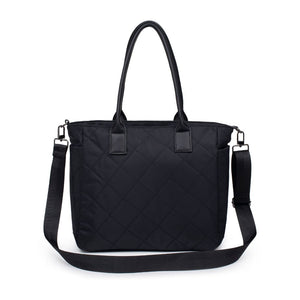 - Exterior Details: Front zip compartment, 2 side slip pockets, quilted