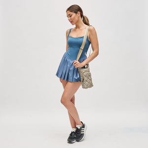 Exterior Details: Quilted Design, Tonal Hardware, Front Zip Pocket, Adjustable Shoulder Strap
